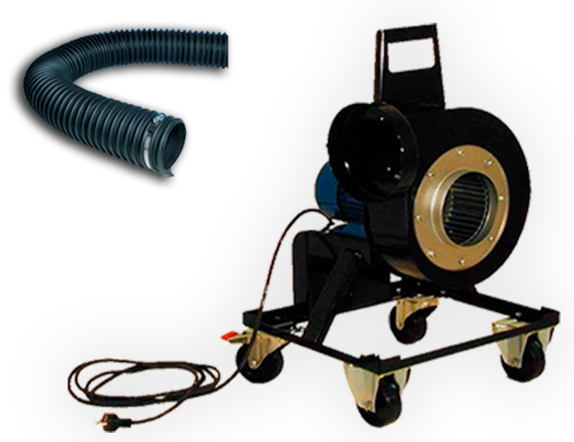 Exaustor monofásico facilmente transportável. Pode ser equipado com dois braços. Opção 400V.