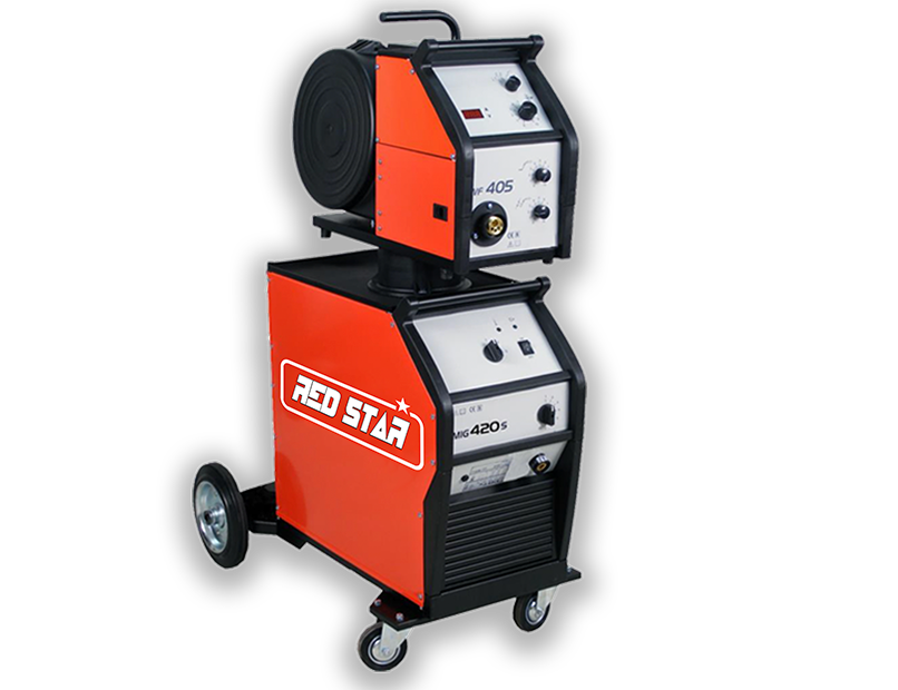 Versão refrigerada por água da MIG 420S, com alimentação de fio WF404 de 4 roletos.